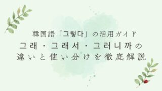 韓国語の「그래」「그래서」「그러니까」の違い、正しく使い分けられていますか?実はすべて「그렇다(そうだ)」の活用形。本記事では、ネイティブが毎日使う相槌から接続詞まで、会話が劇的に自然になる必須フレーズを徹底解説。これを読むだけで「韓国語脳」が手に入ります!